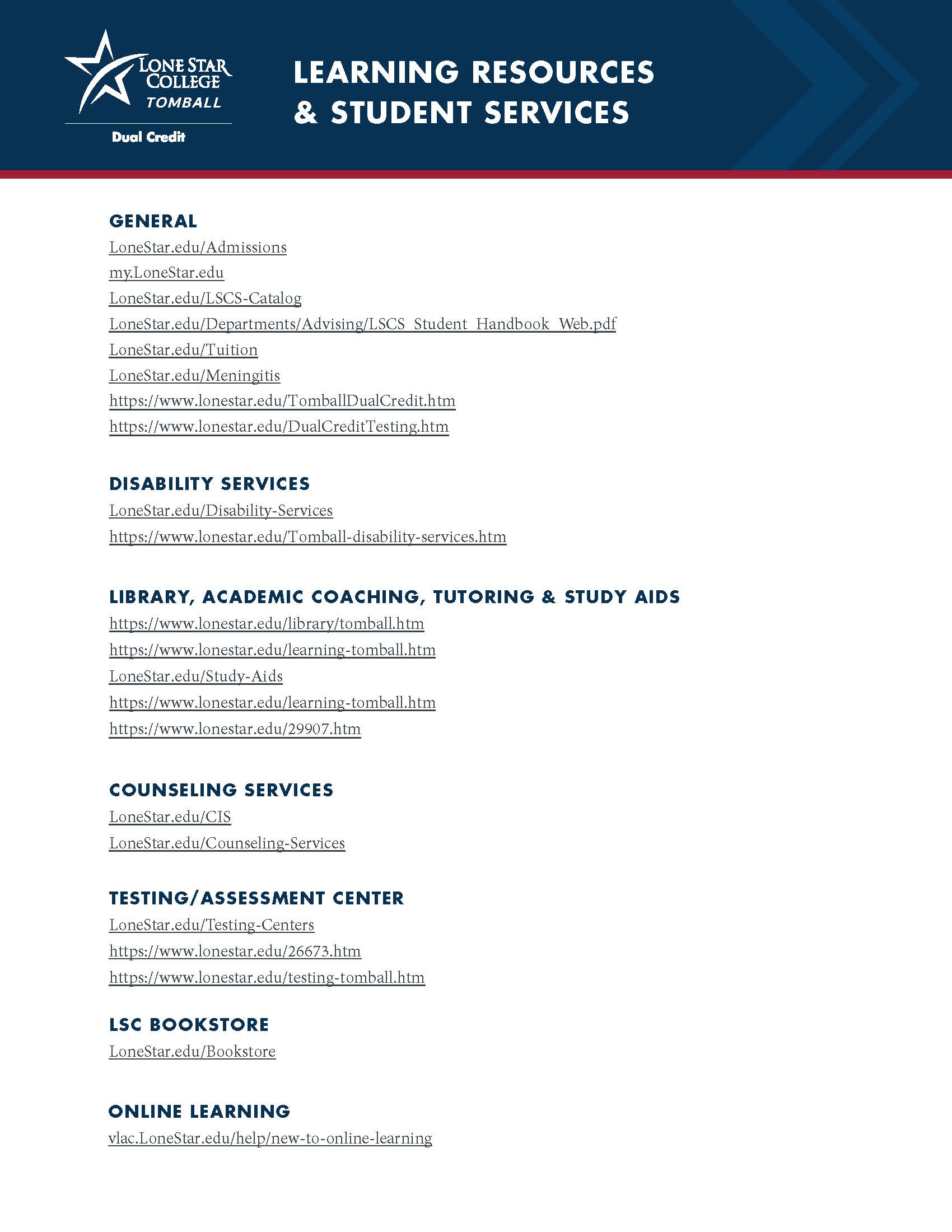 - Student Success Resources - As a dual credit student, you are an LSC-Tomball student. As a Timberwolf, you have access to several resources. This handout will introduce you to the many resources available to you.