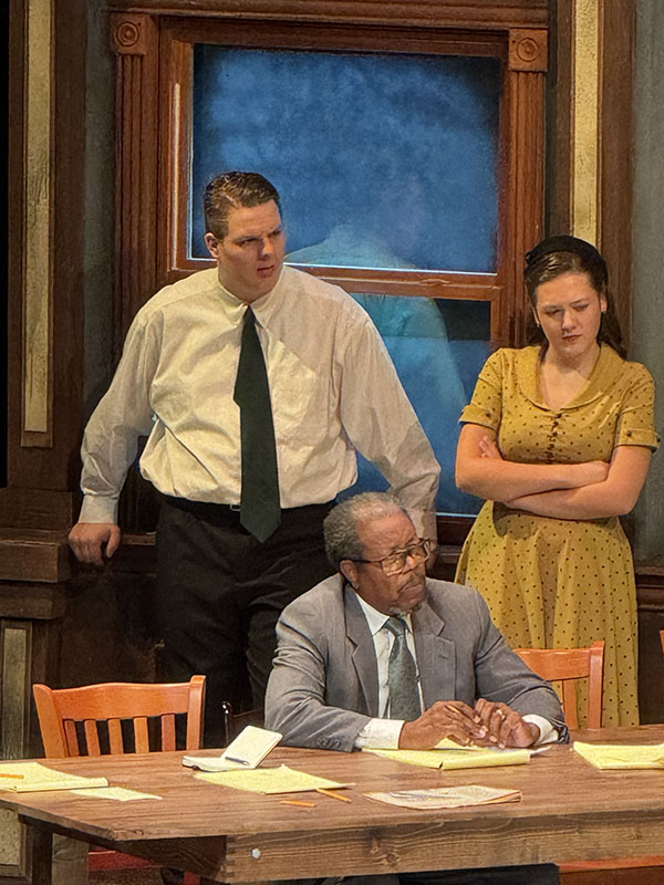 Juror No. 9 was portrayed by Sedric J. Willis, making his debut at LSC-M. Though new to this stage, Willis is a seasoned performer with over 40 area productions to his credit, including Driving Miss Daisy, No Time for Sergeants, and The Rainmaker. He holds a bachelor's degree in Speech and Theatre from Lewis University and brings a wealth of experience and enthusiasm to the role, complementing the ensemble’s collective talent and dedication.