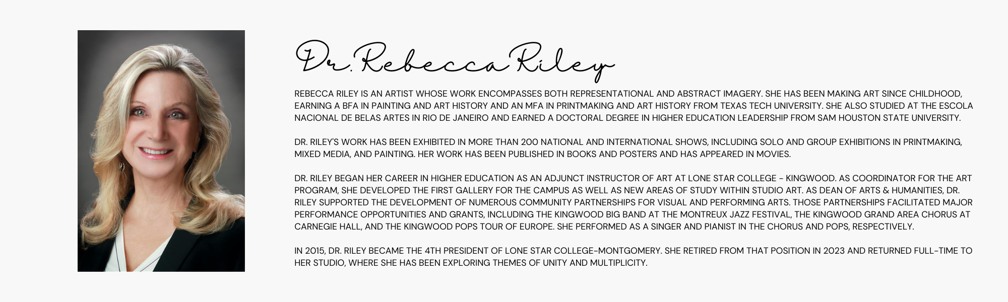 Lone Star College–Montgomery is excited to celebrate Dr. Riley’s guest exhibition here on campus. Her artistry and leadership have made a lasting impact on our community, and we are honored to host her work. The exhibition will run throughout October.
