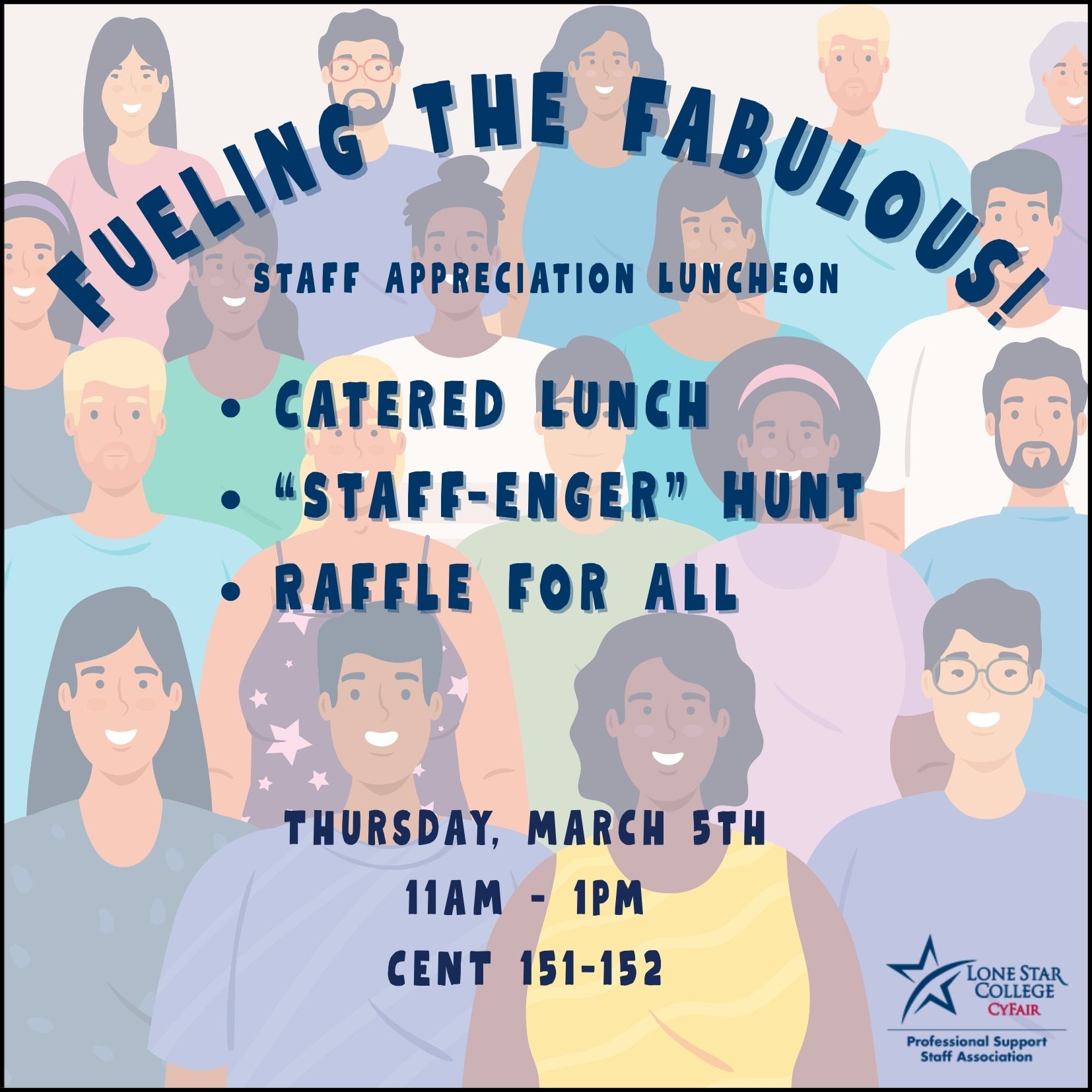 Join us on March 5th from 11am-2pm in CENT 151-152 for the "Fueling the Fabulous: Staff Appreciation Luncheon"