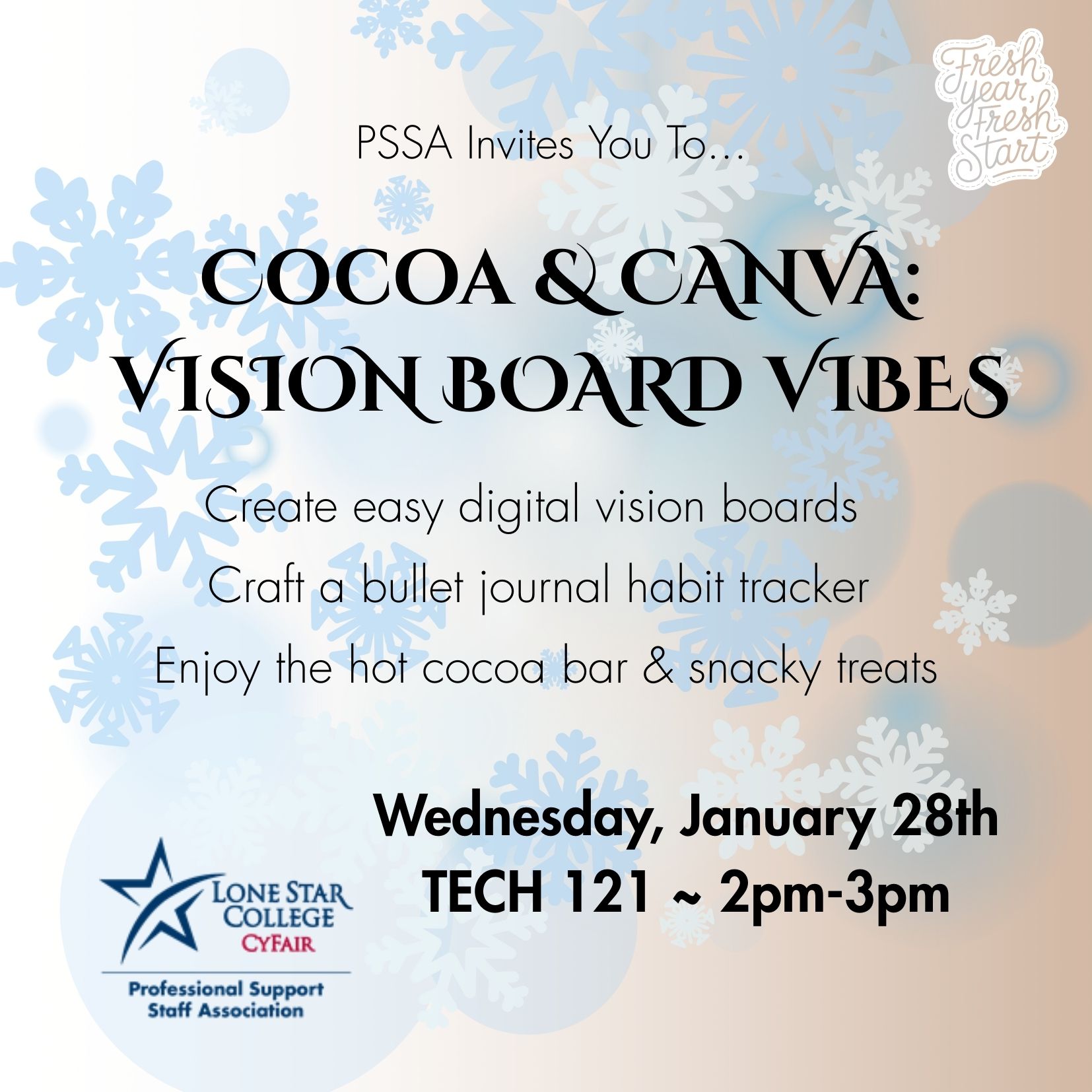 Join us on January 28th from 2-3pm in TECH 121 for the "COCOA & CANVA: VISION BOARD VIBES"