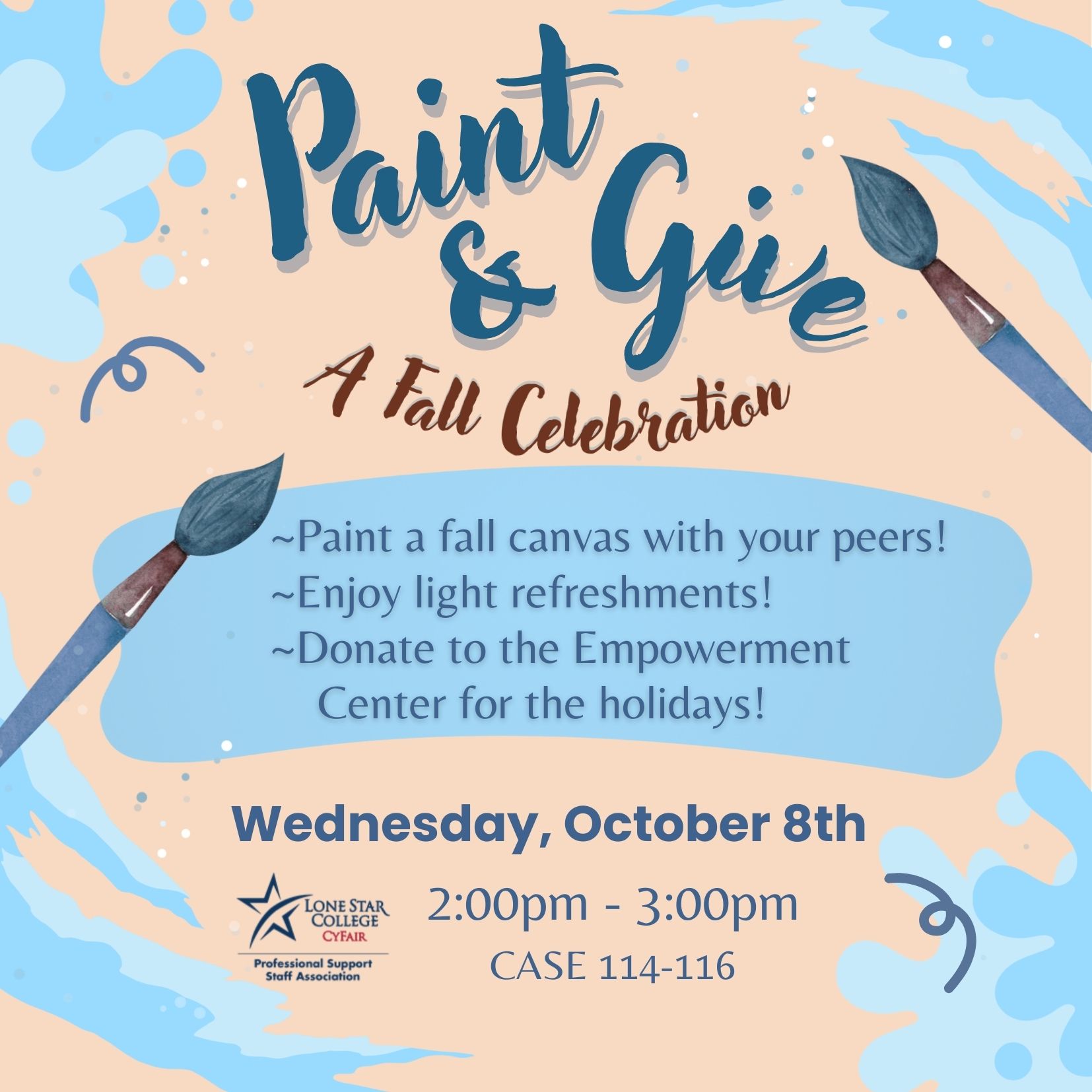Join us on October 8th from 2-3pm in CASE 114-116 for "PAINT & GIVE: A FALL CELEBRATION"