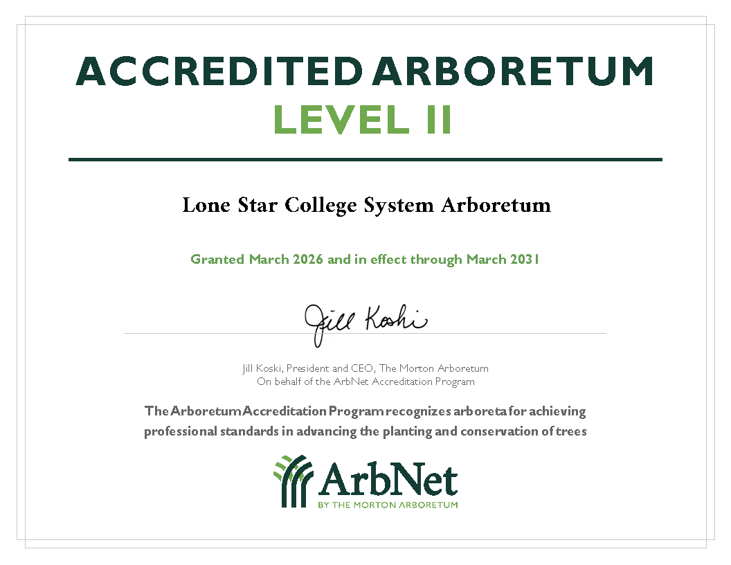 Lone Star College has recently been accredited as a Level II Arboretum.