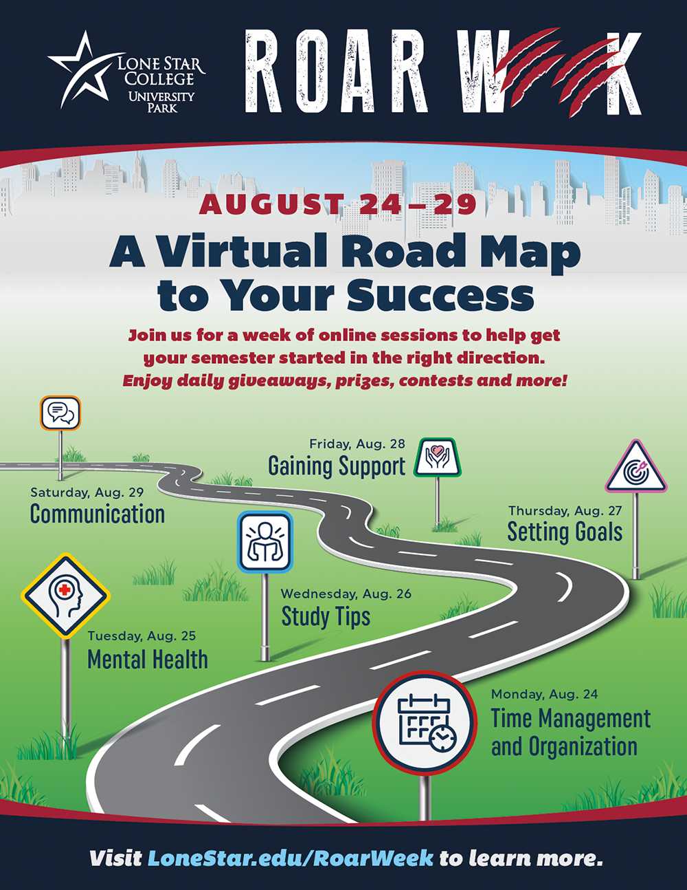 This fall's Roar Week theme, "A Virtual Road Map to Your Success," is centered around ensuring students have the resources they need to feel confident for the fall semester and the opportunity to connect with faculty, staff and peers.